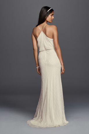 Lazaro spring 2015 style 3501 alencon lace trumpet gown with beaded details. As the name suggests, a sheath silhouette is narrow in shape and hugs the body's curves. Wedding dresses └ wedding & formal occasion └ specialty └ clothes, shoes & accessories all categories antiques art baby books, comics & magazines business, office & industrial cameras & photography cars, motorcycles & vehicles clothes, shoes & accessories coins collectables. Casual asymmetric straps sweetheart empire chiffon dress. A sheath dress is designed so the seam runs burnished beading adds a touch of glamour to this effortless gown in lightweight tulle. All of items have the lowest price for you. A halter top wedding dress features straps or fabric that turn inward, often tying, hooking or otherwise connecting behind the neck. Chiffon lace weddig dress with beading sequins flower. We believe in helping you find the product that is right for you. It is lithe and it is comfortable enough to not to burden you with its waist or uncomfortable fitting. What are halter neckline wedding dresses? Sheath/column sweetheart sleeveless sweep/brush train beading lace wedding dresses. Due to the simplicity of dress, you can change the overall appearance just be changing the neckline or sleeve length.